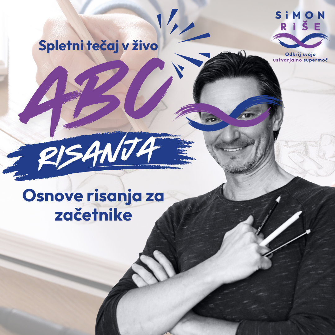 ... s tečajem ABC RISANJA, ki je dovršen tečaj za začetnike, s pomočjo katerega boš znal narisati vse, kar vidiš, si zamisliš ali začutiš.