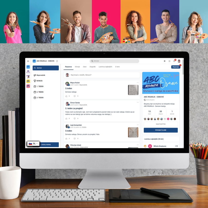 Poleg tečaja dobiš še dostop do spletne skupnosti, kjer objavljaš svoje risbe in Simon jih komentira.