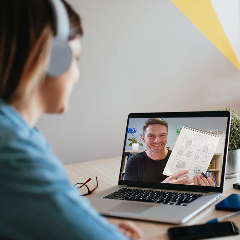 Iz udobja tvojega doma ob skodelici čaja ali kakava rišeš s Simonom v živo preko spletne video konference (Google Meet). Te ure se tudi snemajo in posnetki ti ostanejo za vedno.