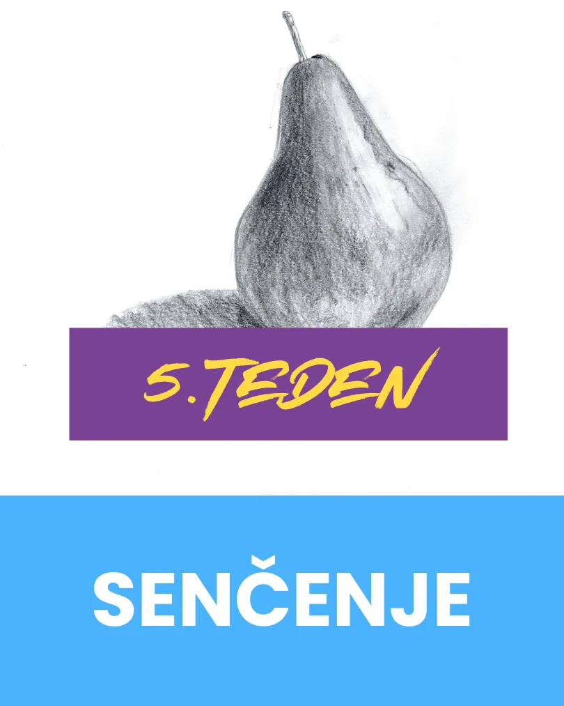 Da še boljše poudarimo tro-dimenzionalnost in realističnost predmetov bomo spoznavali risanje senc z različnimi tehnikami in z enim virom svetlobe.